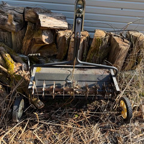 Kuvan uusi ja ammattimainen käyttämätön ilmastin työkalu nurmikon hoitoon.