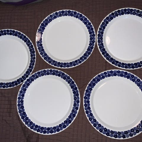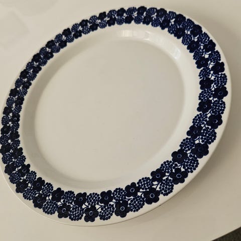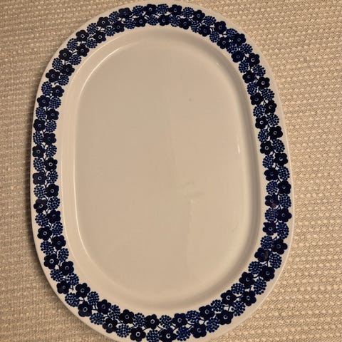 Kaksi Arabian Rypäle-tarjoiluastiaa. Erinomaisessa kunnossa. Isompi lautanen 30x22cm, pienempi 24x17cm. Pienempi hieman syvempi.