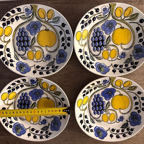 Arabia Paratiisi kahvikupit, lautaset, pullalautaset alkuperäispakkauksineen