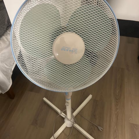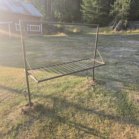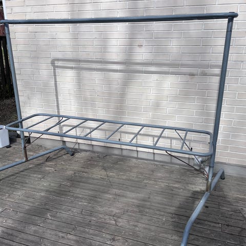Erittäin siistikuntoinen tuuletusteline. Telineessä on kalvanoidut putket. Yhden jalan päästä on tuppi irronnut ja siinä on pieni lommo (erillinen kuva).