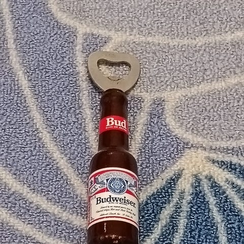 Budweiser premium Beer pankki. Muovikannessa lukee Beer money eli olut raha. Korkeus noin 18 cm ja halkaisija noin 10 cm eli kyllähän sinne yhden reissun sosiaalikustannukset mahtuu. Nouto tai toridiili.