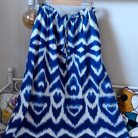Koko L. LEVEYS vyötärö-vyötärö 44 cm, lantio-lantio 52 cm helman yksi leveys 68 cm.