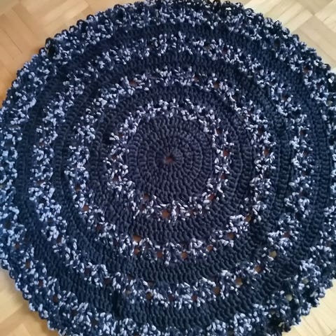 Pyöreä vaaleanpunainen matto, halkaisija 85cm, mennyt pesussa hieman kupruiseksi.