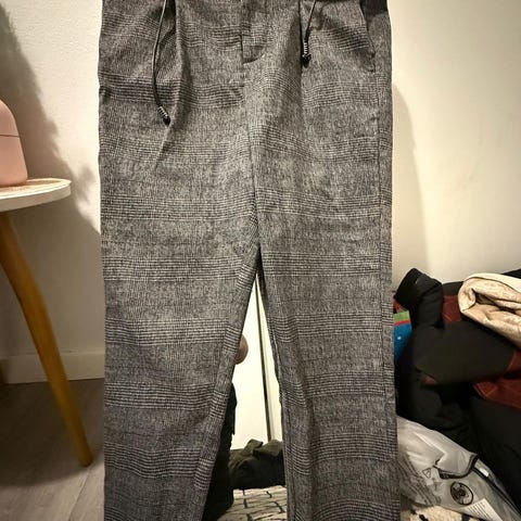 Trendikkäät uudenveroiset housut, luomupuuvillaa-elastaania, venyvä vt resorilla 86 - 100 cm, lahk. 67 cm (7/8), lahk. leveys 28-30 cm, taskut. Nouto 00250 tai ärräpaketti 6 eur.