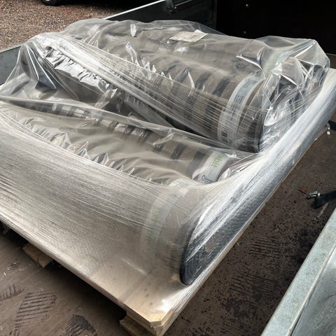 Uusi aluskermi, ollut katossa kiinni pari viikkoa, sitten irrotettu, nyt rullattuna. Paksuus noin 2 mm. Toisella puolella hiekkapinta, toinen kuvan mukainen kangas. Liimattu yhtenäiseksi lämmittämällä. Pidetty pressu koko ajan päällä. Hinta uutena tuhannen euron luokkaa.