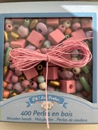 Djecon puuhelmet. Paketti avattu ja otettu kuvan erikoishelmet (kissa, pilvi, sateenkaari ja timantti). Joustavaa narua jäljellä reilu 4m.