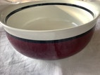 Uunivuoka, vetoisuus 0,6 dl, vuoan pohjassa sanomista, sisältä siisti.