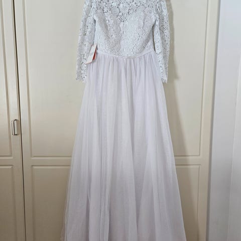Uusi käyttämätön jj housen häämekko. Sävy norsunluu ja koko 42. Lattiaa hipova pituus.