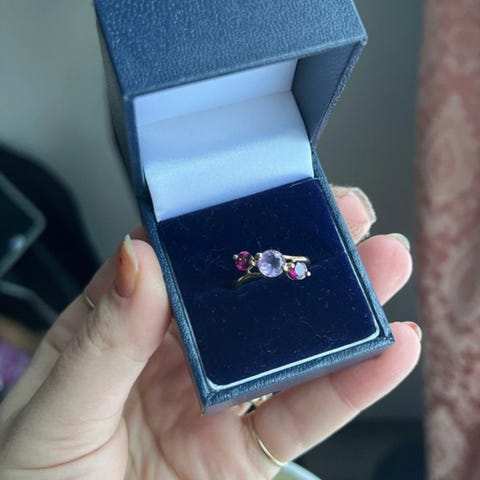 Ei kaiverrusta. 2.6 g 16.5 mm. Keskimmäisen rivin kivet ei symmetrisesti (kuuluu designiin)