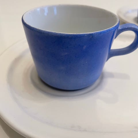 Hyvässä kunnossa oleva Kesto sarjan turkoosi kahvikuppi ja lautanen keräilijälle
