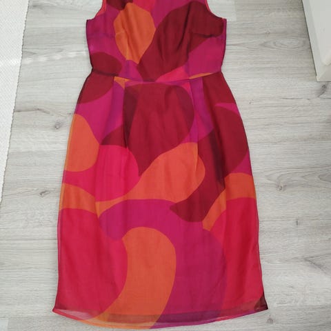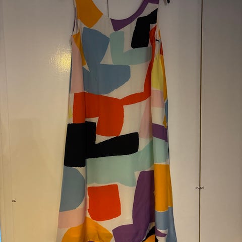 Myydään kaunis uudenveroinen Marimekon mekko Nima, jonka materiaali on silkki/ viskoosi, alla ohut vuori. Parit juhlat juhlittu ja pesty käsin silkinpesuaineella, ei käytön jälkiä. Kankaassa pieni virhe kainalon alla, katso 4.kuva, mutta se ei näy käytössä eikä ole reikä. Koko 36 ( kainalosta kainaloon 45 cm, olka-helma etupuolella 98cm ja takana 110cm. Hieno vaikka kevään ylioppilaalle tai valmistujalle! Hinta 40euroa, lähetettynä 45euroa. Nouto/ toimitus lähialueelle tai toridiili sovittaessa.