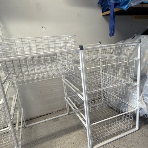 Elfa säilytysratkaisut, kuvan osat. Kenkä hyllyt, irtohyllyt, naulakko, taustalevyt kaikki yhteensä 80€