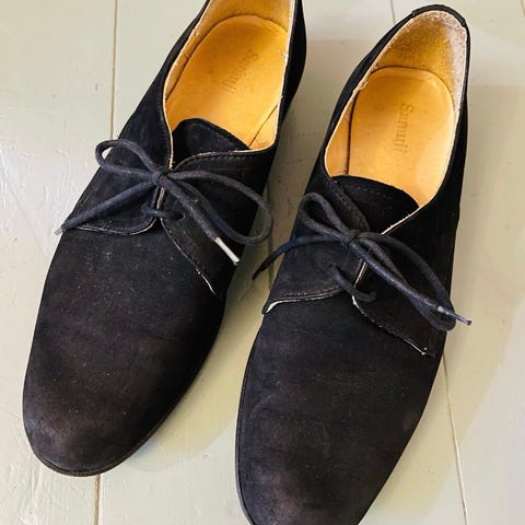 Myydään Samujin Lace up -kengät. Täysin nahkaiset, teetetty kumipohjat ja -korkolaput. Kangasnauhat. Laatikko mukana.