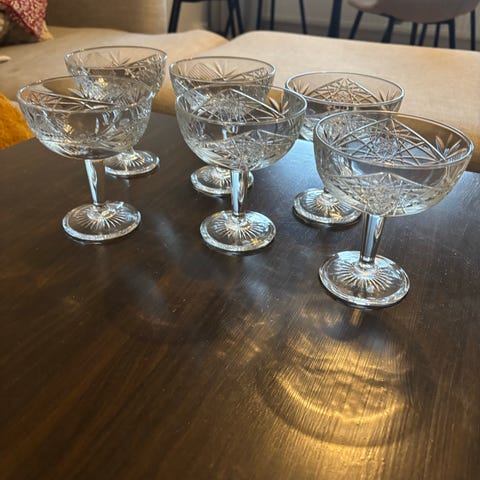 10 kpl käsinmaalattuja laseja, korkeus 10 cm ja halkaisija 6,5cm. Lisäksi saman sarjan kannu, korkeus 19 cm ja halkaisija 10/8 cm. Kannun pohjassa joku "lisäke", muttei paikkaus. Voin tuoda Helsingin keskustaan tai 20 km säteellä Vantaan Koivukylästä.