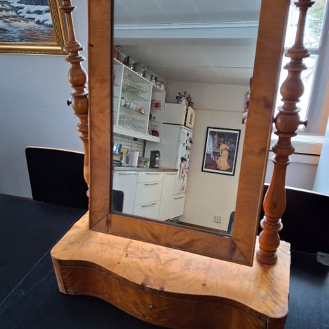 Meikkipeili jossa kaksipuolinen peili, toinen normaali ja toinen suurentava. Kolme eri valo-asetusta