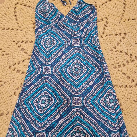 Vuorellinen mekko, polviin asti, pussittava, koska vuori ommeltu helmaan kiinni