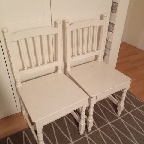 Vanhat tukevat keltaiset metallituolit. Hyvässä kunnossa muutoin, mutta maali lohkeilee sieltä täältä, itse pidän juurikin näin "rouheena". Istuimen päällisen voi vaihtaa eikä mielestäni olekaan kovin kaunis, harmaa tekonahka ja vaatii ainakin pesun. Nidottu.