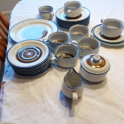 Peter Winqvistin suunnittelemat, käsin maalatut Arabian teekupit 70-luvulta.