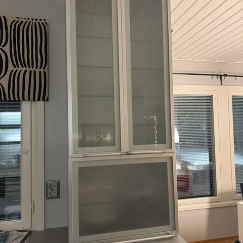 Pitkien komeroiden päälle tai sellaisena seinään. Kaapin runko lev 110 cm, kork 41 cm, syv 57 cm.