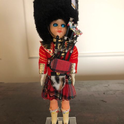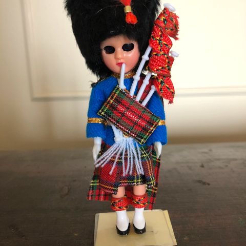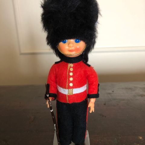 Vanha matkamuisto nukke. Englanti 1981. Nukella aukeavat ja kiinni menevät silmät. Korkeus 29 cm. Postitus onnistuu.