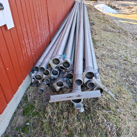 Kuuden metrin salkoja 17 kpl, sinkittyä teräsputkea.