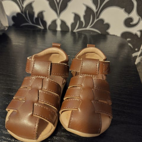 Hyvät sandaalit ensimmäiseen kesään! Tummansinistä, vaaleanvihreää ja harmaata. Pientä käytön jälkeä vaikka vain vähän olleet jalassa ja vielä vähemmän kävelty. Helpot säädöt kolmella tarranauhalla. Liukumaton pohja. Koko 18 eli 9-12kk vauvalle. Savuton ja eläimetön talous. Maksu mieluiten MobilePayllä. Mahdolliset postikulut lisään hintaan ja maksu ennakkoon.