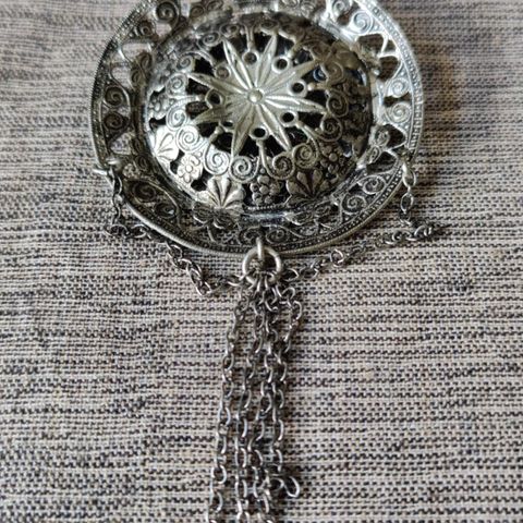 Rintaneula, jossa ei leimoja, joten materiaalista ei ole tietoa. Ikää sillä on ainakin 1982, jolloin löysimme sen uuden kotimme kätköistä. Paino ja koko näkyvät kuvissa.