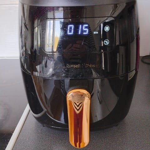 Yhden vuoden käytössä ollut airfryer. Korissa aika paljon kulumaa teflon pinnassa, muuten erittäin hyväkuntoinen. Myynnissä uuden isomman airfryerin alta pois.