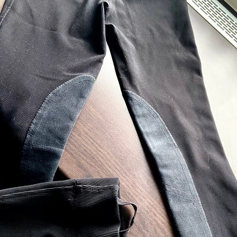 Erittäin hyväkuntoiset kokomokkapaikkaiset TuffRiderin valkoiset ribatut ratsastushousut. Nilkoissa tarrakiinnitys. Lapussa koko 42, mutta mielestäni ehkä enemmän koko 40 olisi oikea.