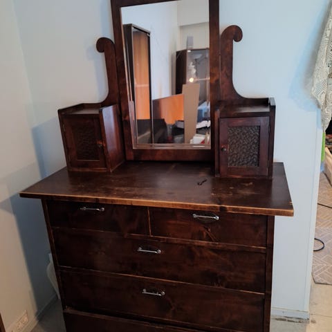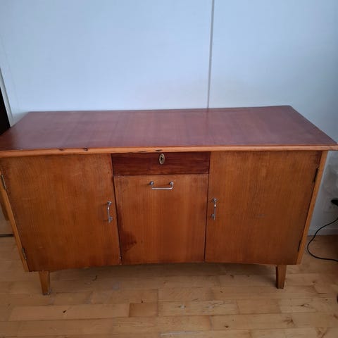 Myydään vanha painava kaappi. Kunto hyvä. Sisällä säädeltävät hyllyt.