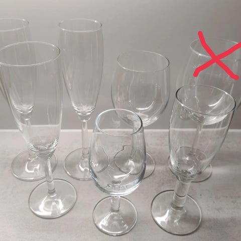 8 kpl ehkä luminarcin kuohuviinilaseja, 3 kpl mustalla jalalla ja 5 vaaleansinisellä. raidallinen lasi myyty