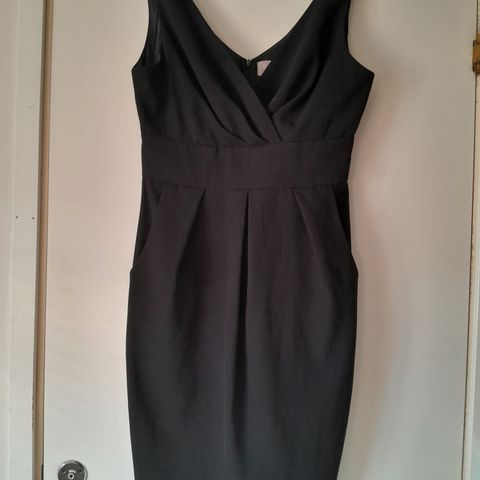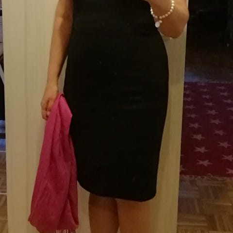 B. Youngin pikkumusta/kotelomekko, koko 34. Elegantti klassikko. Vuoritettu, takana vetoketju. Kaula-aukossa koristeena metalliketju. Erittäin hyvässä kunnossa, vetoketju toimiva. Sirokokoinen, tämä on ollut itselleni XS-/S-kokoisena sopiva. 100 % polyesteria
