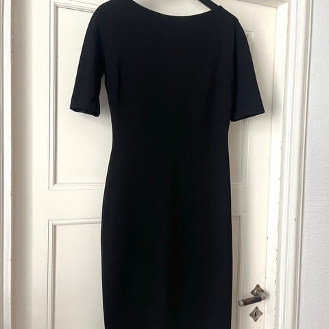 Marks & Spencerin elegantti ja mukava pikkumusta. Mukavaa, joustavaa ja laskeutuvaa kangasta. Kauniisti leikattu, veistoksellinen ja väljä malli, joka sopii monenkokoiselle. Koko UK 12, joka vastaa kokoa 38. Itse olen kuitenkin käyttänyt tätä XS/S-kokoisena ja on sopinut hyvin. Vyötäröllä kuminauha. 95 % polyesteri, 5 % elastaani.