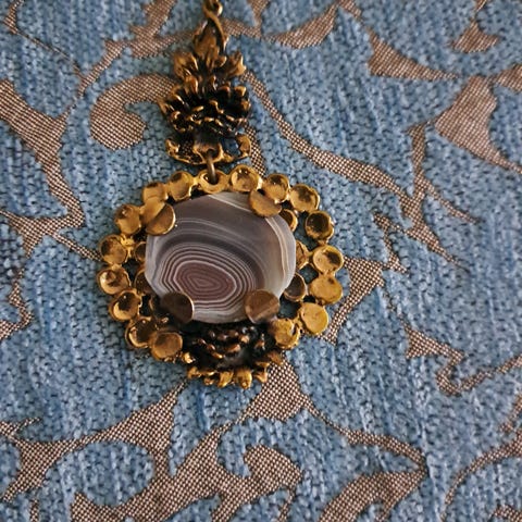 Pronssinen Turun Hopean valmistama Pentti Sarpanevan kaulakoru. Pitsi -sarjaa 70-luvulta.