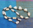 60-luvun kaulakoru helmiäistä ja hematiittihelmiä. Hyvin kaunis, hyväkuntoinen 50 cm pitkä helminauha. Hienoa, laadukasta työtä. Nouto tai postikulut kirjeenä ostajalle. Sijainti lähellä Itiksen metroasemaa. Katso muutkin ilmoitukseni, paljon retroa, vintagea sekä kymmenien vuosien kerryttämää tavaraa myynnissä, muitakin vintagekoruja.