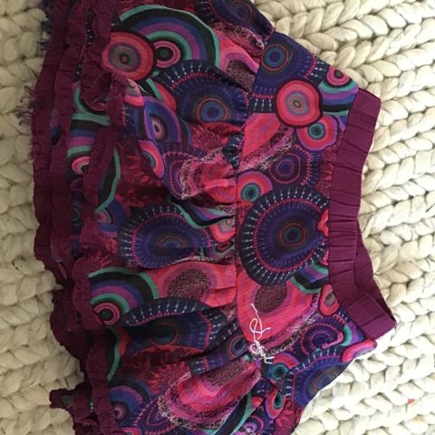 Desigual hame, koko 9/10 (134/140?). Paljon käytetty. Vyötärön kuminauha hieman löysä.