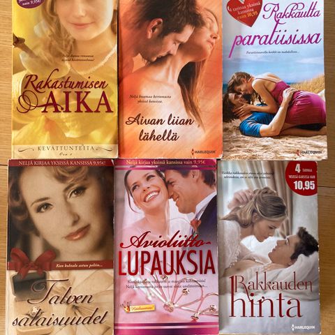 Kuvassa olevat kirjat romantiikan nälkäiselle. Postitan