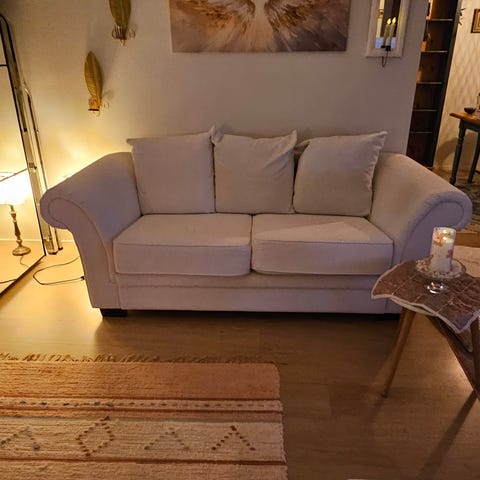 Kuin uusi, Beige kahden istuttava sohva + 2 kpl rahit. Erittäin siisti.