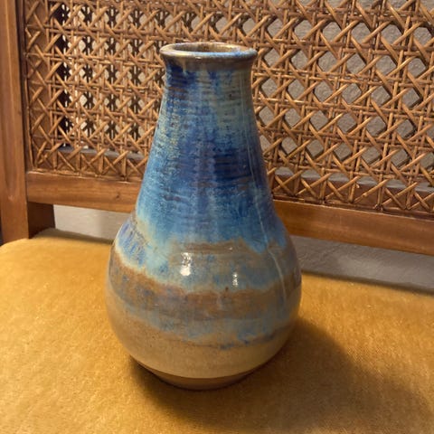 Knabstrupin keraaminen maljakko sinisen sävyisillä lasiteilla, 1960-luku.