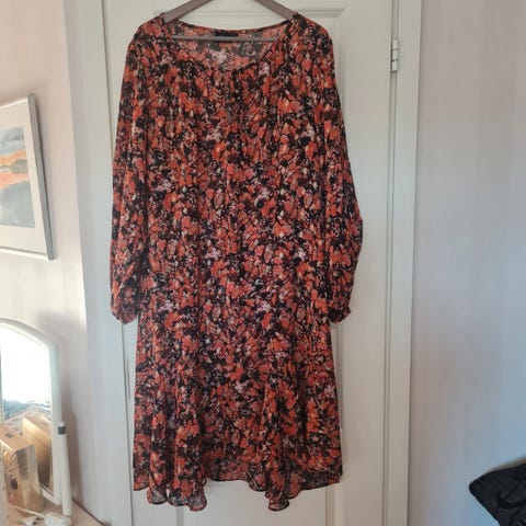 Kaunis mekko, hyvin joustavaa kangasta. Italian koko 48, joka vastaa suomen kokoa 42.