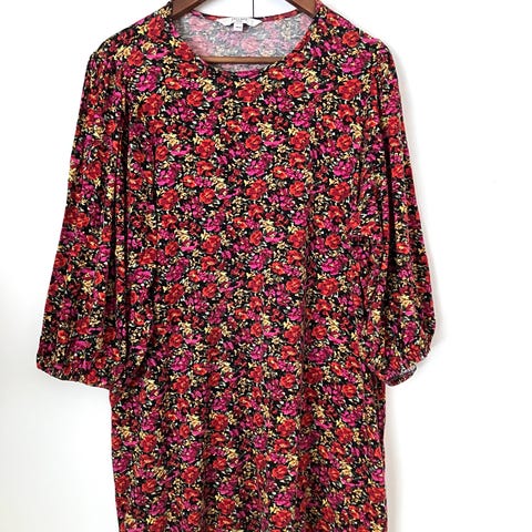 54cm mitta kainalosta kainaloon. Kapein kohta (pitsin kohdalta) on 46cm. Kangas joustaa.