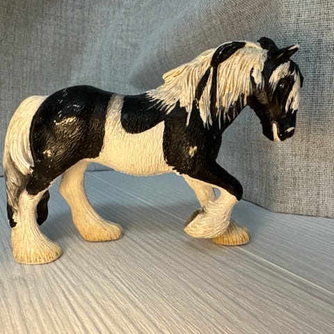 Schleich hevonen. Irlannincob, tamma. Vuodelta 2003. Hyvä, leikitty kunto. Vähän kulumaa tummassa maalissa.