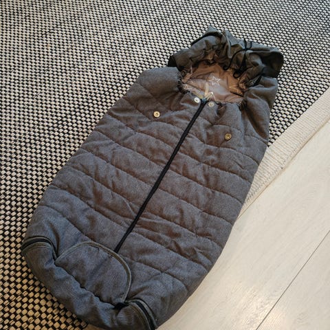 Paksu fleecekankainen vauvan lämpöpussi.