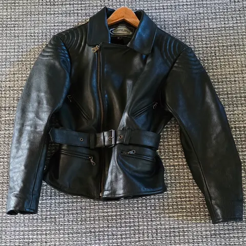 Hienossa kunnossa oleva nahkainen / punainen ajotakki.