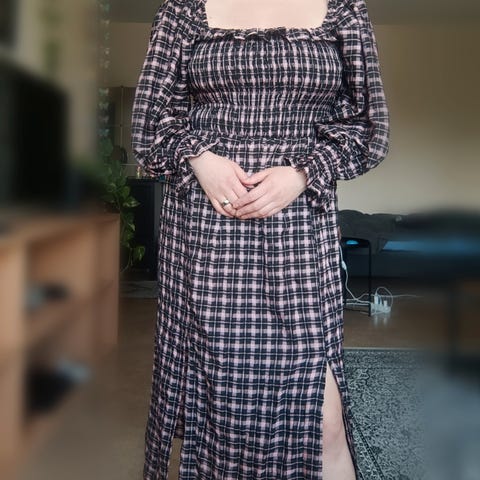River Island -merkkinen maksimekko. Erinomaisessa kunnossa. Molemmilla puolilla helmassa halkio sekä hartioiden kohdalla etupuolella aukot.