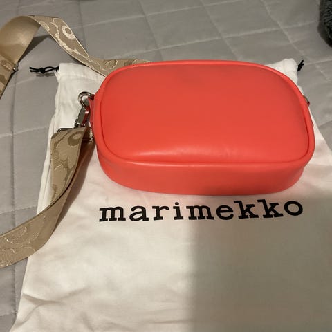Marimekko Gratha laukku, tummanvihreä, hihnassa teksti molemmin puolin. Todella hyvässä kunnossa sekä sisältä että ulkoa.