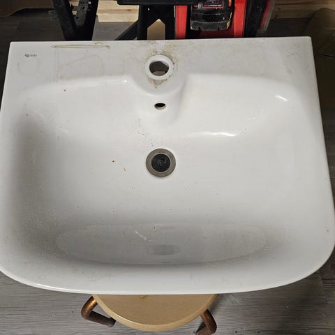 Uusi allas, mitat: leveys yläosa 44 cm, Syvyys yläosa 46.5 cm, korkeus 12,5 cm, leveys alaosa 39 cm ja syvyys alaosa 42 cm. Pöydän päälle asennettava malli.