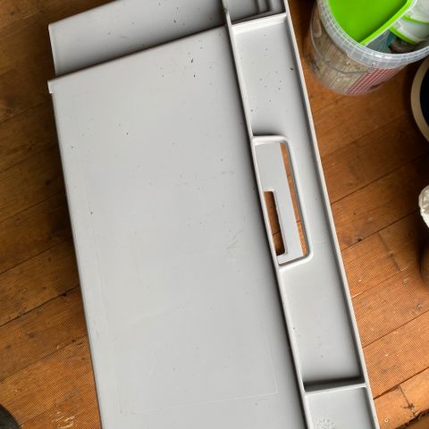 Myydään kannellinen muovilaatikko. Pölyinen varastossa säilytetty. Mitat pituus 78cm , leveys 56cm ja syvyys 17cm. Vain nouto.