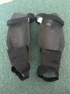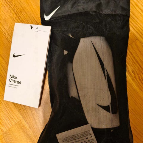 Nike charge säärisuojat koko s eli mittalapun mukaan 150-160cm pelaajalle. Yhden kesän käytössä olleet: muutamia pinnallisia hiertymiä muoviosissa, hentoa pehmentymää tarranauhan ulkopinnalla ja pientä poimuilua alakuminauhassa (kaikki varsin vähäistä ja näkyvät kuvissa). Tarranauhat pitävät loistavasti.