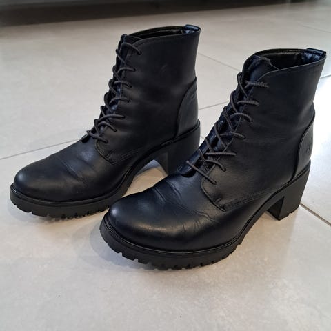 Itselleni turhan isot myös villasukan kanssa. Ostettu viime vuonna Torista. Hyvässä kunnossa, pinta tarkoituksellisesti kuluneen näköiset.